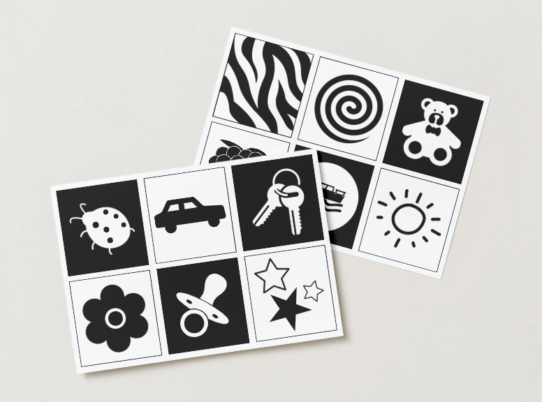 - Les cartes visuelles : pour développer la curiosité et le visuel de bébé !