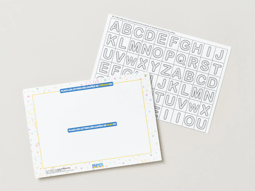 Un pack festif pour apprendre en s’amusant ! L’enfant joue avec les lettres et les chiffres de son propre univers : prénom, date de naissance, signe astrologique, saison… une activité complète pour éveiller la motricité fine tout en célébrant son grand jour !